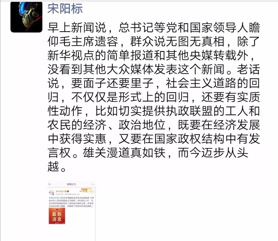 如果真的如我所愿,那我的愿望是马列主义毛泽东思想定义的社会主义公有制,是劳动人民当家做主,是毛主席一生为之努力奋斗的最大多数人的公平正义,是共产党人的继续革命……而这些,不是仅仅靠一些形式,就能够代表的。