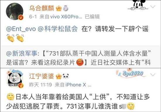 近日,一则“‘人体70%是水’是日军731部队把活的中国人蒸干得出的结论”的帖文火了,但微博科普大V@Ent_evo 却辟谣称该网友发帖内容有误,指其用谣言增加日本731部队的罪行,民间科普组织@科学松鼠会 也转发支持。