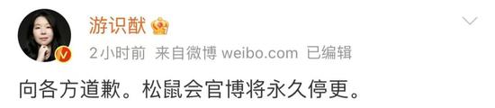 今天中午这篇致歉声明发出后,认证为果壳网主笔的@游识猷 转发了该文并向各方道歉,宣布松鼠会官博将永久停更。
