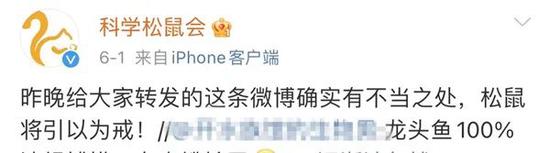 其实翻车第二天,也就是6月1日,@科学松鼠会曾经发过一条道歉博文。